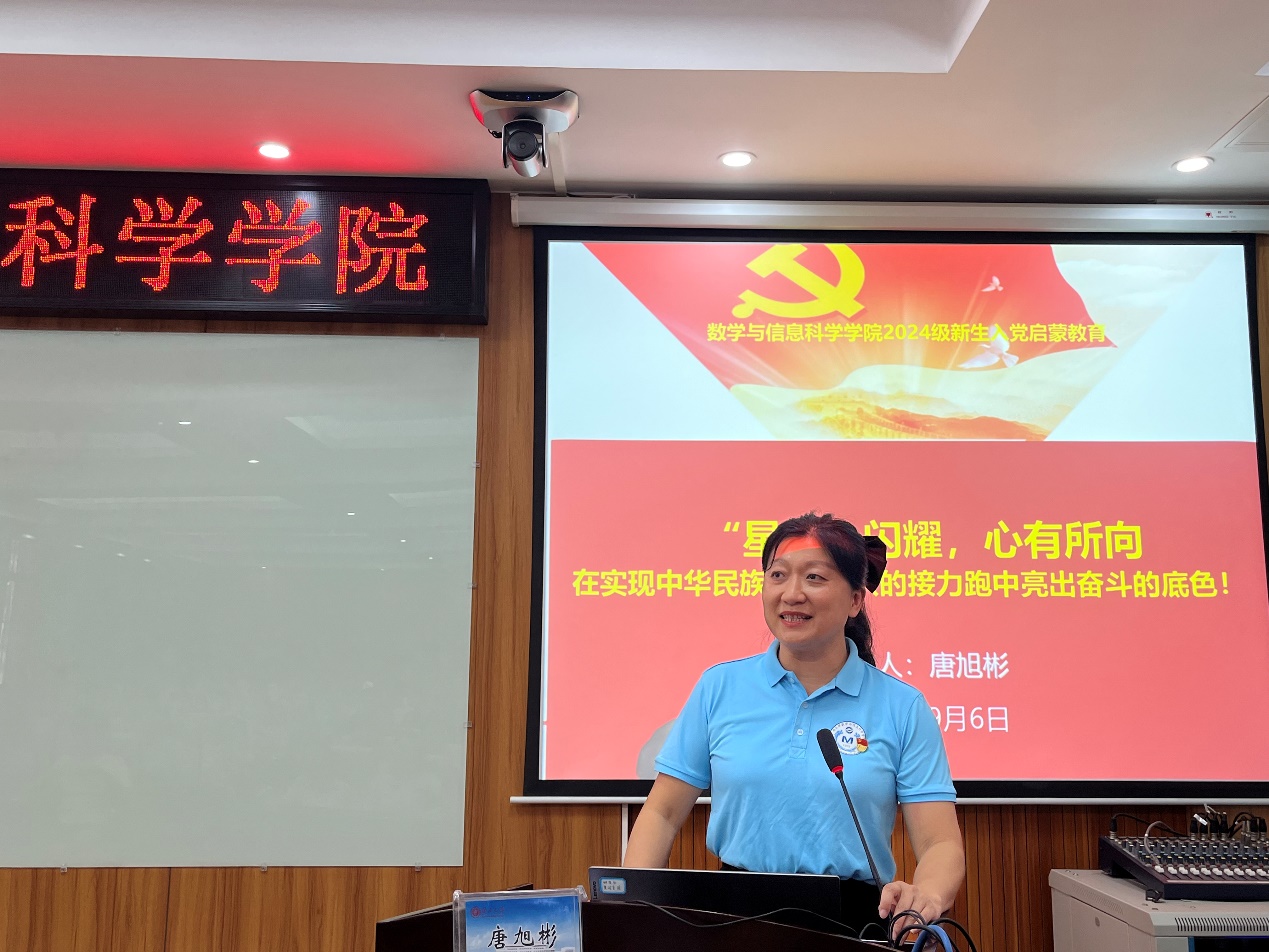 唐旭彬从记党史、学党章、崇誓言、看党旗、向组织、获党徽等层面为同学们深入介绍了党的基本知识和党的光辉历史,让同学们深刻感受到了中国共产党一百来取得的伟大成就和执政为民的宗旨意识,帮助同学们端正入党动机,提高对党的认识,明确入党流程,积极向党组织靠拢。她强调,加入中国共产党不仅是个人荣誉的象征,更是责任和使命的体现,同学们要坚定理想信念,将个人理想融入国家和民族的伟大事业中,以实际行动践行社会主义核心价值观。