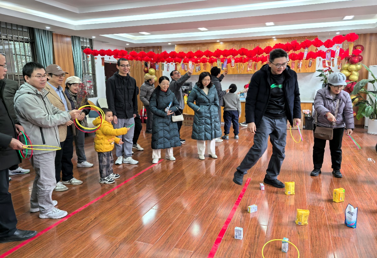 套圈活动现场热闹非凡,老师们瞄准目标,稳稳抛出手中的彩圈,现场不时响起一阵阵喝彩声。