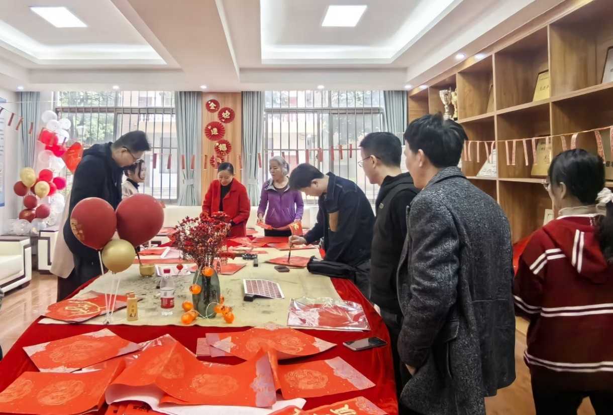 写福字和写对联活动现场,大家将美好祝福蕴含在笔墨间,写出一个个寓意吉祥的“福”字和一幅幅饱含中华传统文化之美的对联,并将心意赠送到彼此手中。